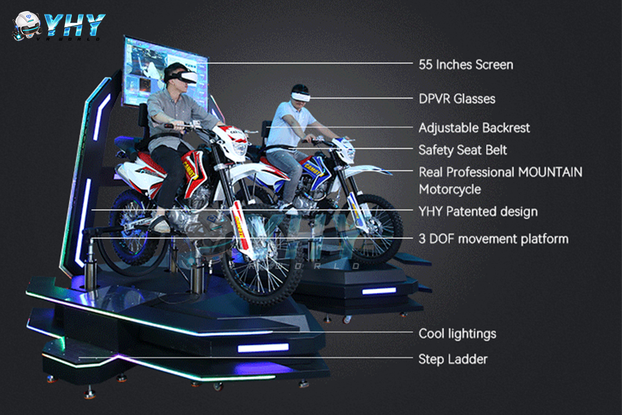 Yhy-01.122 Exclusive 3 DoF 55 Inch Screen VR Racing 2 Seats Driving Game VR Motorbike Simulator
